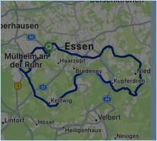Werden und Kettwig zurück (ca. 67 Km und 248 Hm).