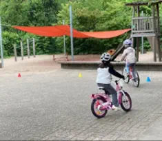 Beim „Rollenden Kibaz" handelt es sich um ein Kinderbewegungsabzeichen (Kibaz), mit welchem die Teilnehmen-den mit ihrem Fahrrad oder Laufrad einen zehn Stationen umfassenden Parcours erfolgreich durchlaufen. Jeweils 2 Helfer*innen begleiteten die Kinder mit ihren Eltern auf dem Parcours. Die Kinder hatten die Aufgabe, an einer bestimmten Stelle zu bremsen, aufgemalte Linien nachzufahren, eine Slalomstrecke zu absolvieren oder über eine kleine Wippe zu fahren. Zudem bekam jedes Mädchen oder jeder Junge die Möglichkeit, eine Station mit dem Rollstuhl zu meistern. Diese Station wurde vom Verein für Bewegungssport und Gesundheitssport (VBGS) betreut. Die Kinder nahmen mit Freude dieses Angebot an.Zum Ende freuten sich alle Teilnehmenden über eine entsprechende Urkunde sowie über ein Malbuch und Buntstifte.(Text: Manfred Krister)