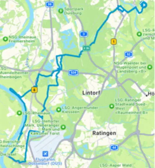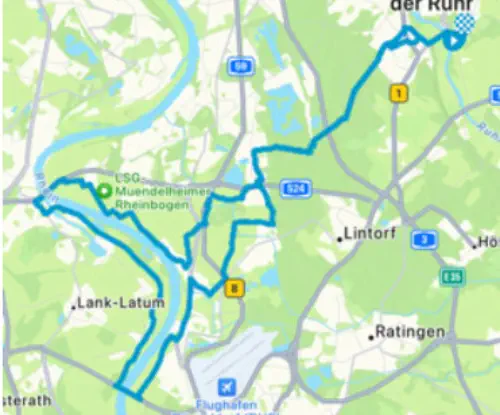Mündelheim, von dort am Rhein entlang nach Kaiserswerth und über
