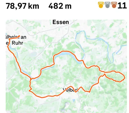Werden und Kettwig zurück (ca. 67 Km und 248 Hm).