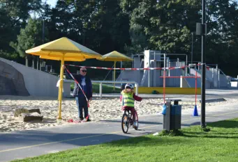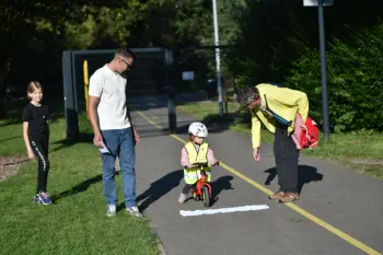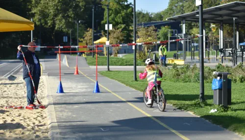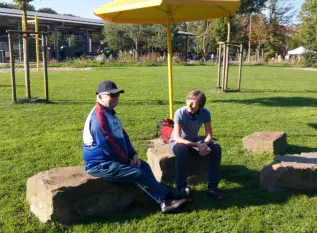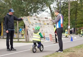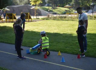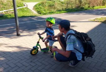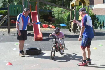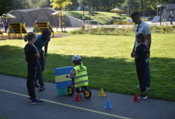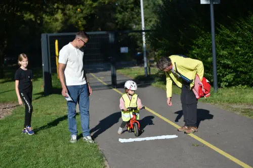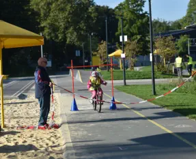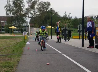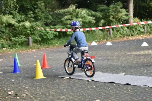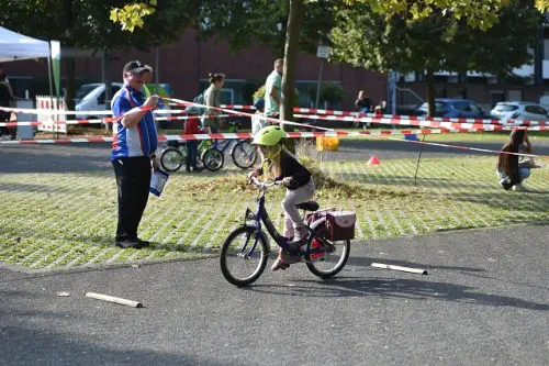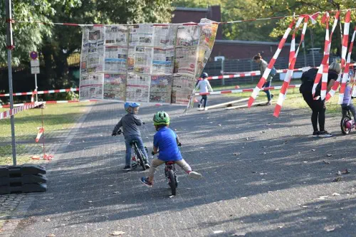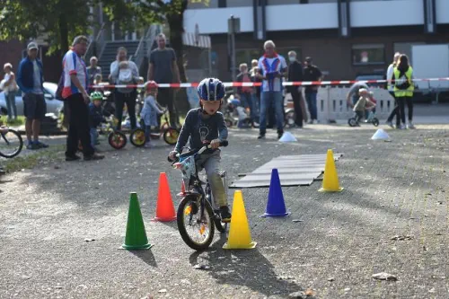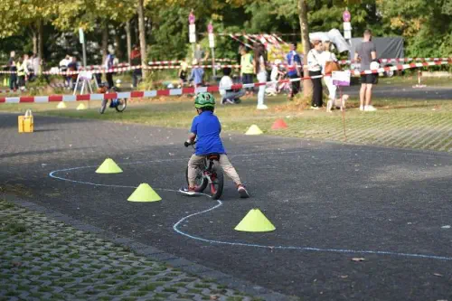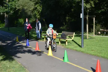 Beim „Rollenden Kibaz" handelt es sich um ein Kinderbewegungsabzeichen (Kibaz), mit welchem die Teilnehmen-den mit ihrem Fahrrad oder Laufrad einen zehn Stationen umfassenden Parcours erfolgreich durchlaufen. Jeweils 2 Helfer*innen begleiteten die Kinder mit ihren Eltern auf dem Parcours. Die Kinder hatten die Aufgabe, an einer bestimmten Stelle zu bremsen, aufgemalte Linien nachzufahren, eine Slalomstrecke zu absolvieren oder über eine kleine Wippe zu fahren. Zudem bekam jedes Mädchen oder jeder Junge die Möglichkeit, eine Station mit dem Rollstuhl zu meistern. Diese Station wurde vom Verein für Bewegungssport und Gesundheitssport (VBGS) betreut. Die Kinder nahmen mit Freude dieses Angebot an.Zum Ende freuten sich alle Teilnehmenden über eine entsprechende Urkunde sowie über ein Malbuch und Buntstifte.(Text: Manfred Krister)